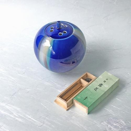 【ギフトにおすすめ】白檀露芝S20本入&3.5号香炉釉彩九谷焼&香炉灰