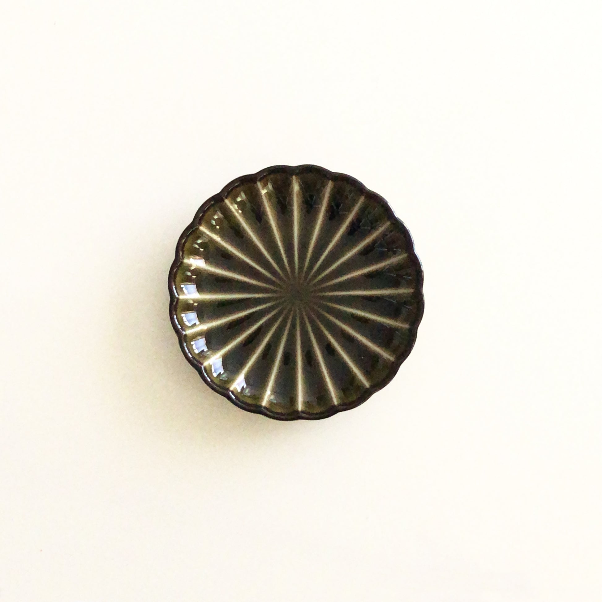 お香皿 ぎやまん陶 利休グリーン小(三寸皿)黒梅香立付
