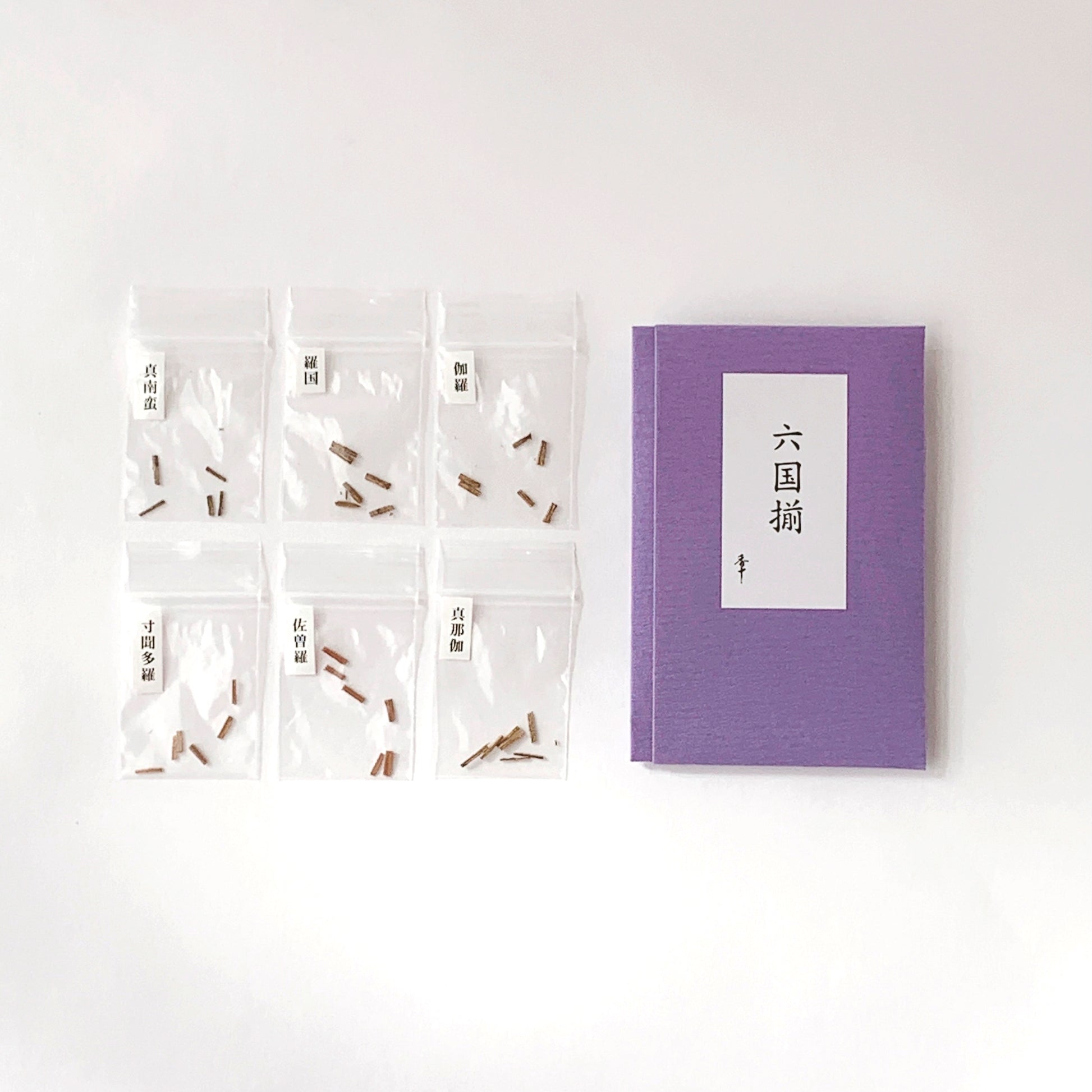 香道で用いられる香木は自然の偶然がつくりだすものでその微妙な香の違いを「伽羅・羅国・真南蛮・真那賀・佐曽羅・寸聞多羅」と産地にちなんで名づけ、「六国」と表現してきました。