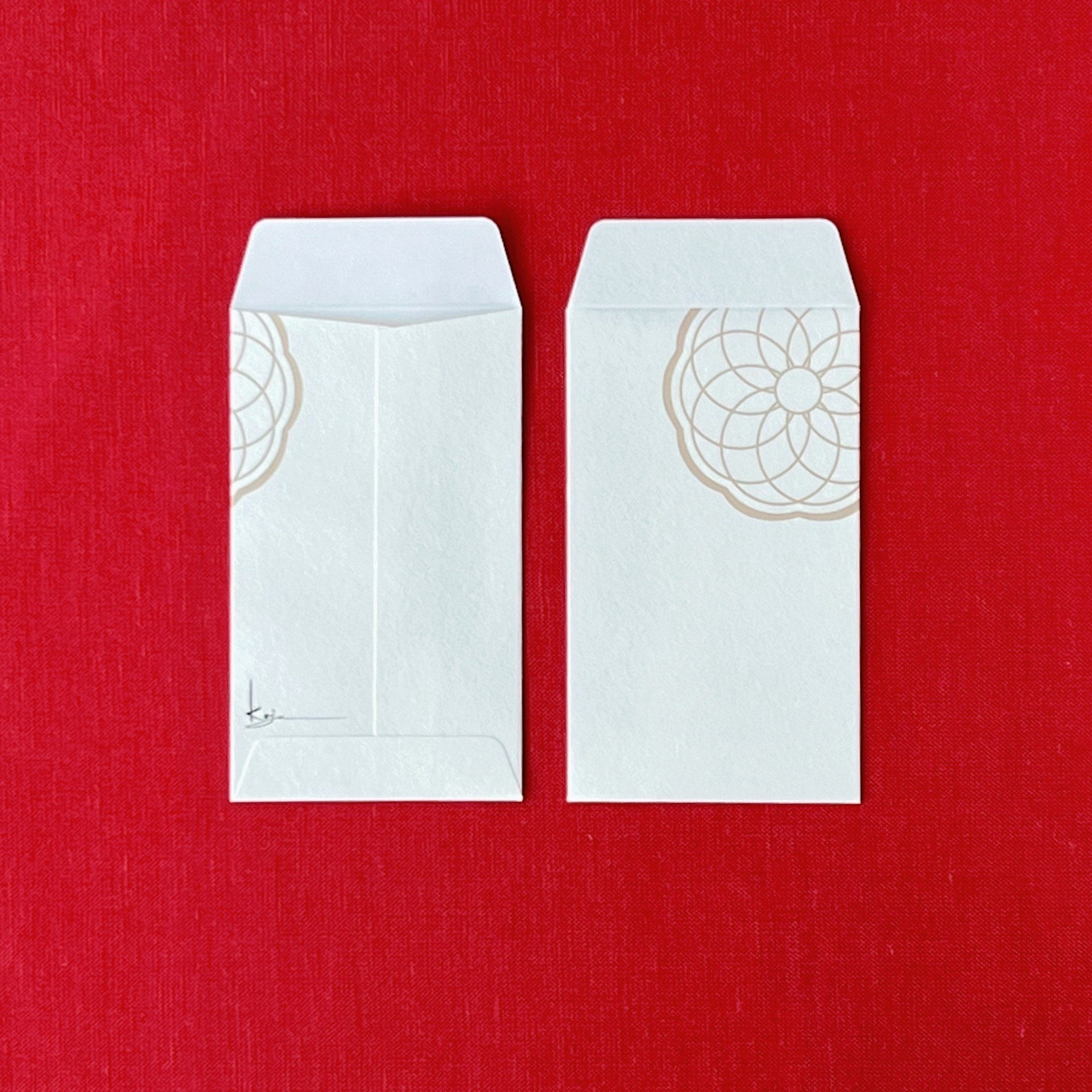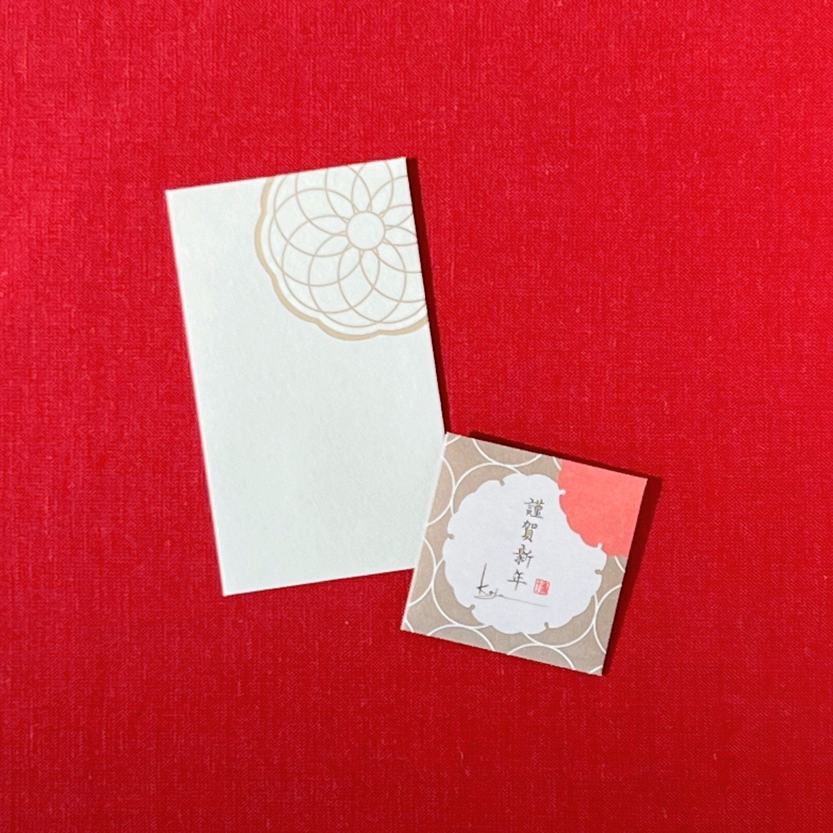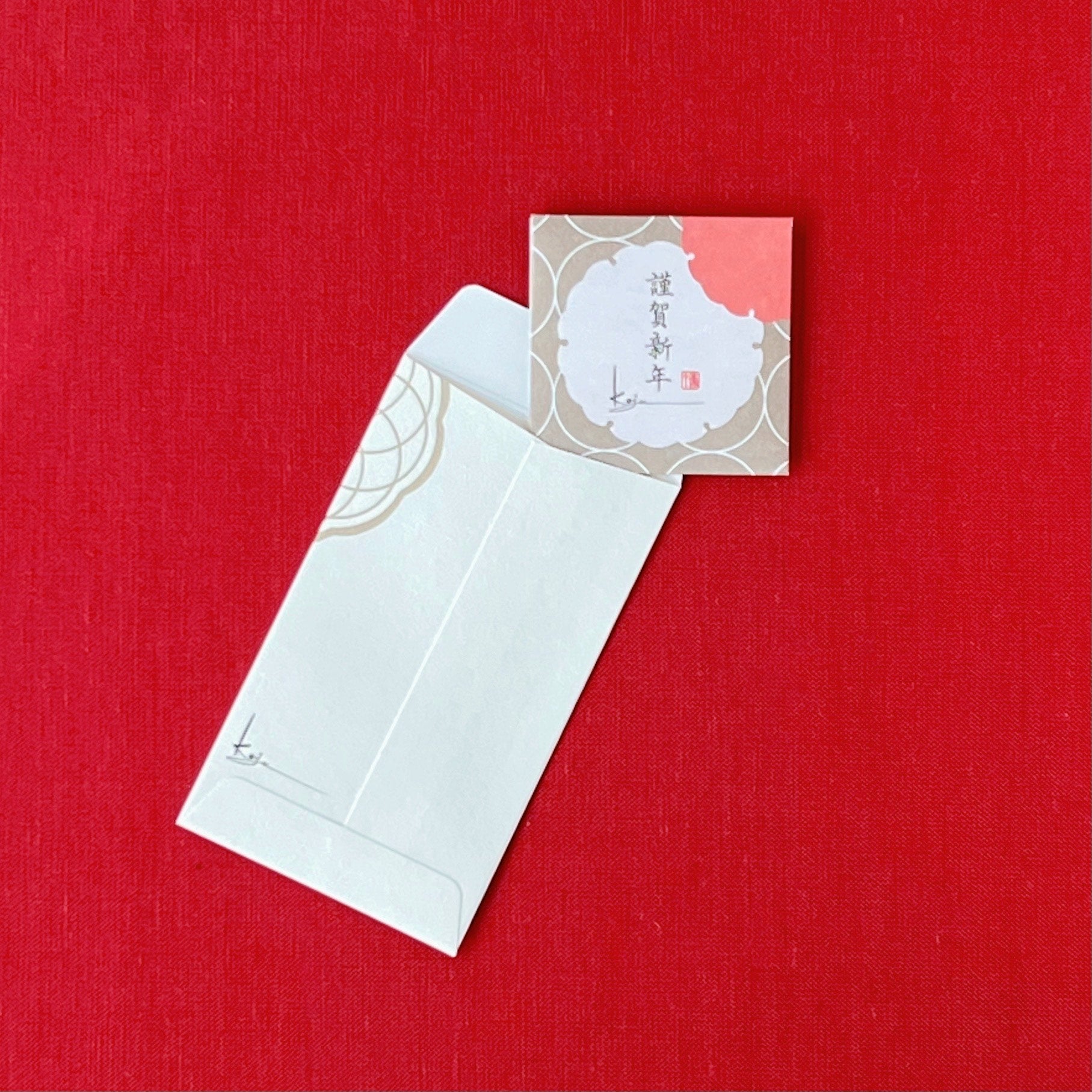 「謹賀新年」のデザインの名私香とオリジナルぽち袋12枚セットになります。