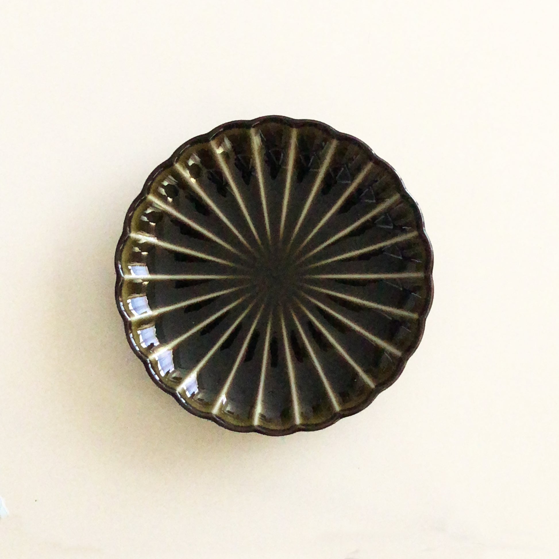 お香皿 ぎやまん陶 利休グリーン大(四寸皿)黒梅香立付
