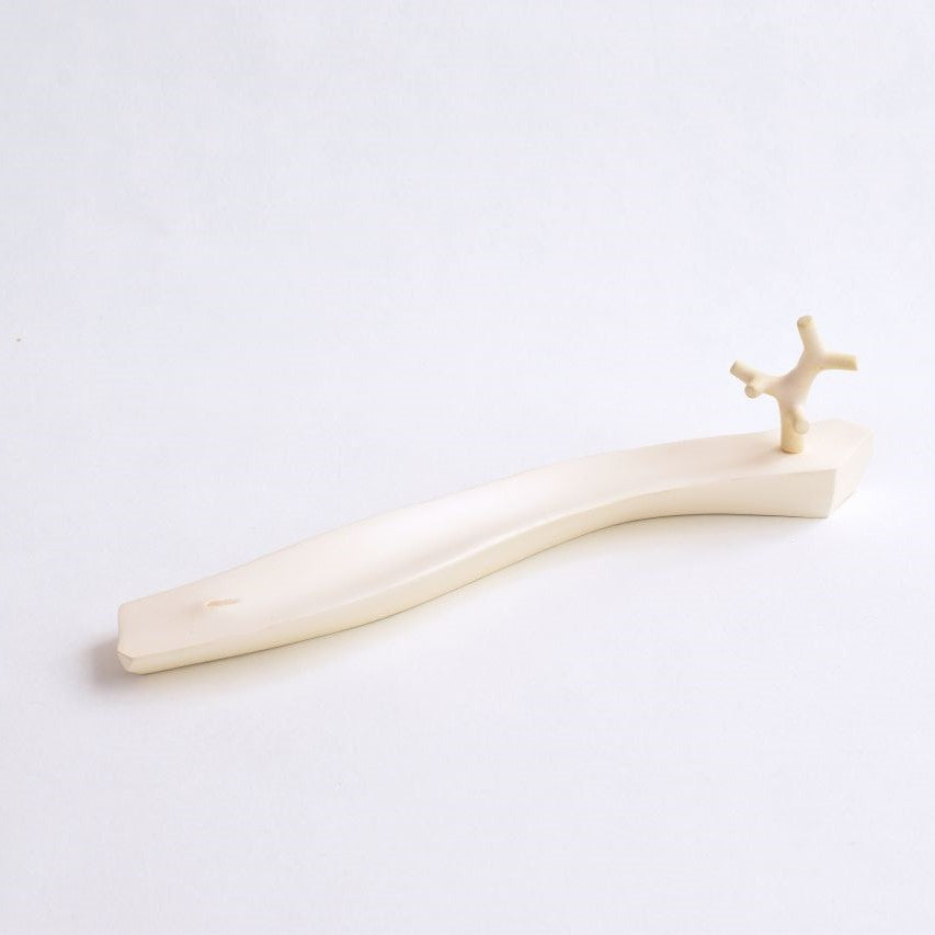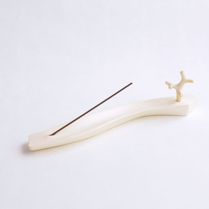 お香を斜めに挿すタイプで、灰が散らばらずに小道に落ちる角度にしています。柔らかな曲線と一本の木が特徴です。