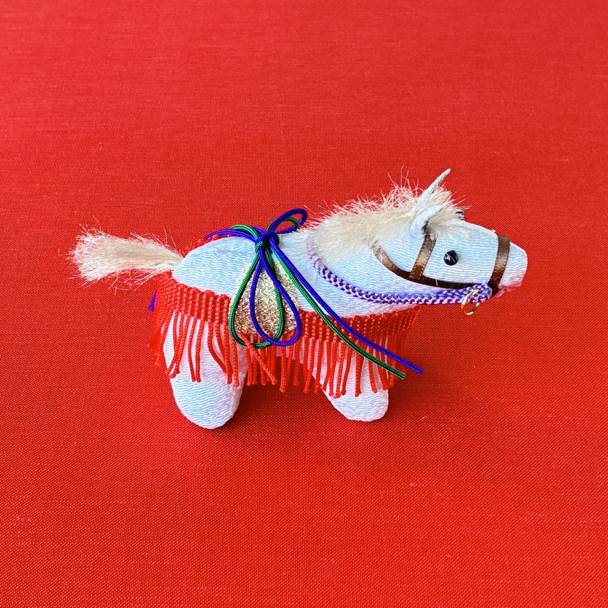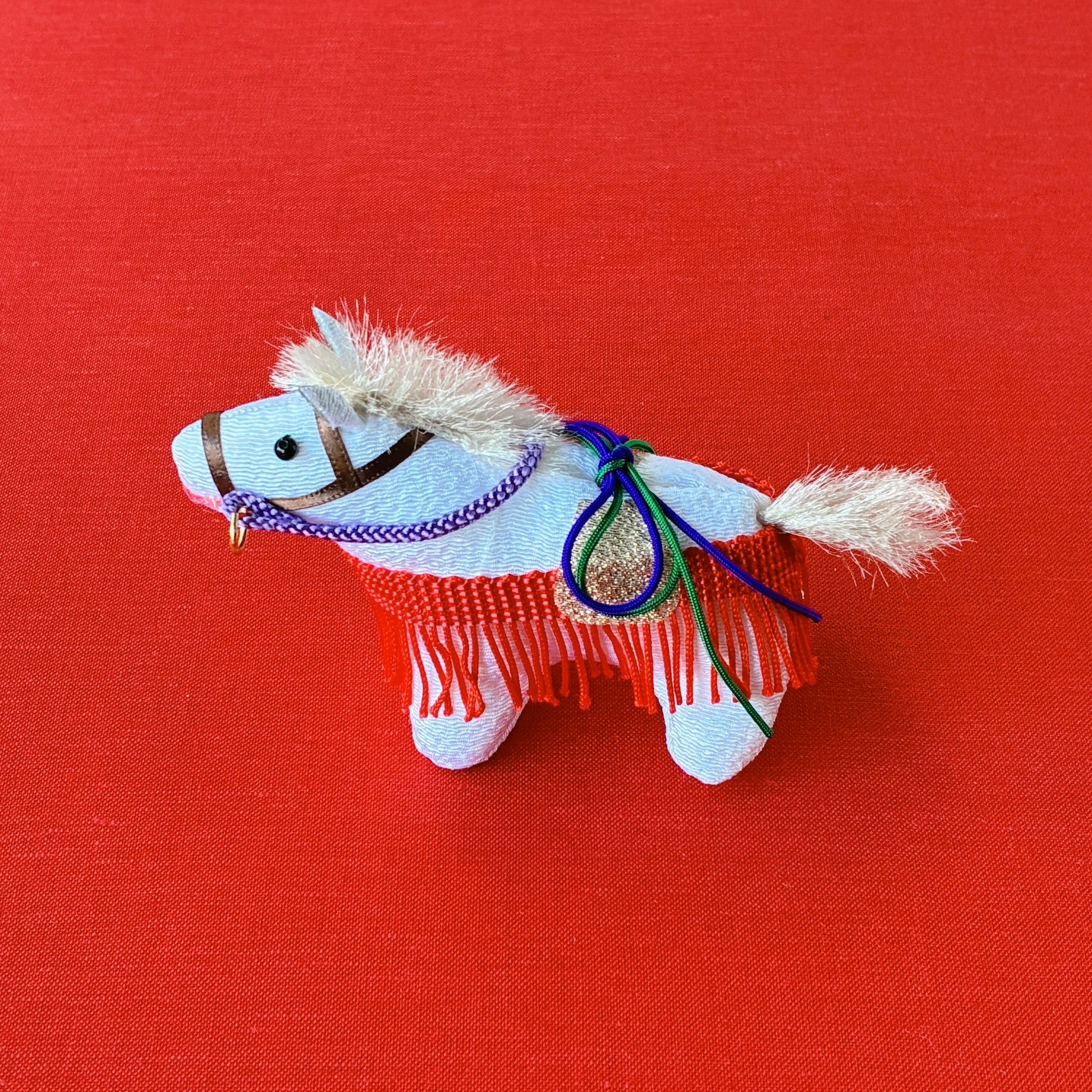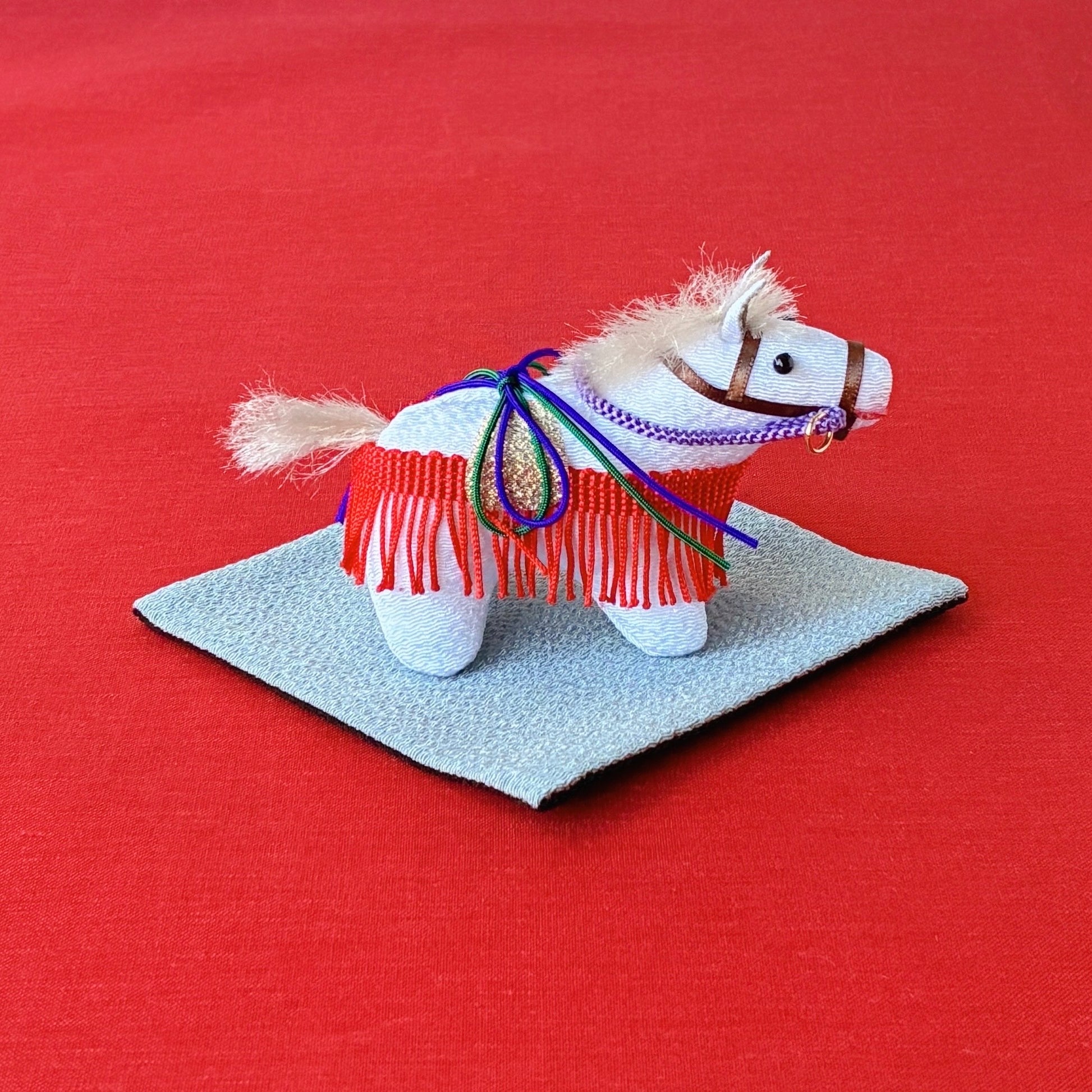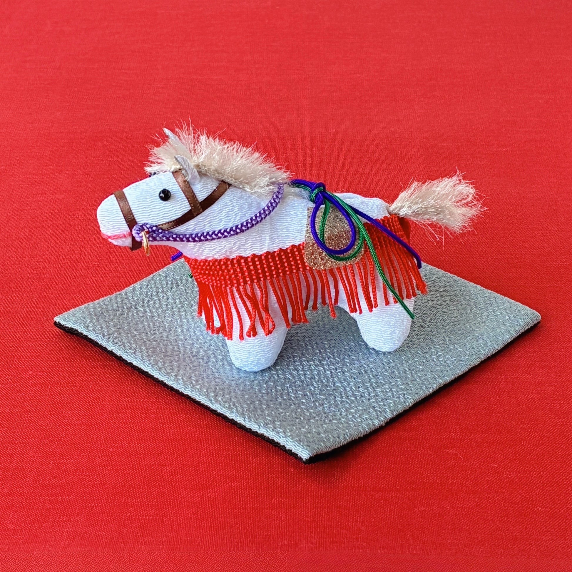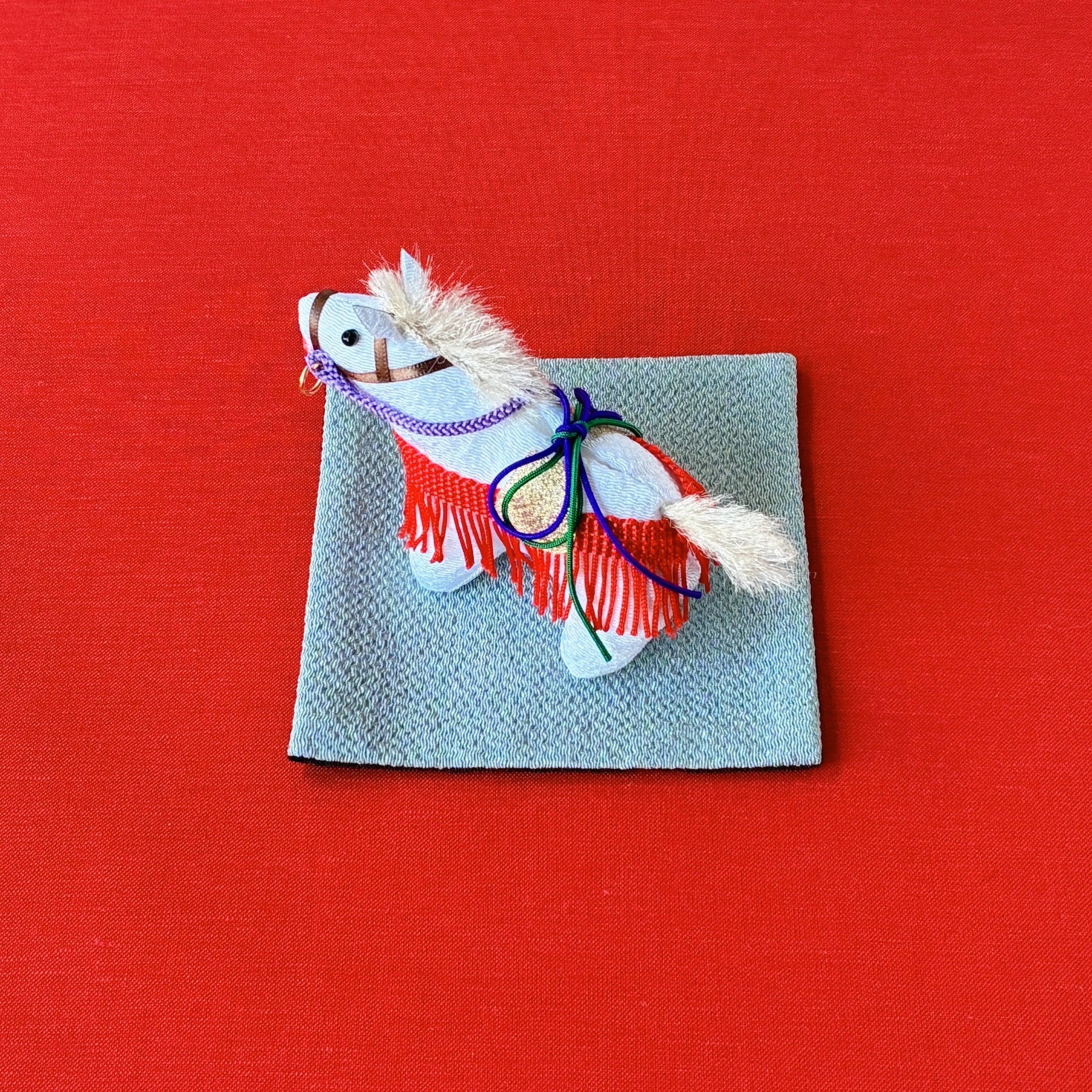 敷物は午が引き立つグレーと黒のリバーシブル仕様。お好みやインテリアに合わせてお使いいただけます。